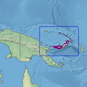 The New Britain-New Ireland lowland rain forests is a tropical moist forest ecoregion in Papua New Guinea. The ecoregion covers the lowland rain forests of New Britain, New Ireland, and nearby islands in the Bismarck Archipelago.[2][3][4]