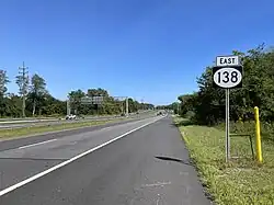 Route 138 is a state highway located entirely in Monmouth County, New Jersey that extends for 3.52 miles (5.66 km). The route's western terminus is at the eastern end of Interstate 195 at the interchange with Route 34 in Wall Township. Route 138's eastern terminus is at Route 35 in Wall Township. The highway is also meant to be an evacuation route in case of a disaster, where the eastbound lanes (as well as the eastbound lanes on Interstate 195) would be reversed all the way to the New Jersey Turnpike.[2]