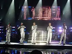 New Kids on the Block Live was the fifth concert tour by American band New Kids on the Block and the first in 14 years since the group broke up after their last tour in 1994. In April 2008, the group reunited on the Today Show, announcing a new album and tour.[1] The tour visited North America and Europe.[2] The tour took place from the fall of 2008 through the summer of 2010. Each year, the tour was revamped with new staging, setlist and tour name. In 2009, the tour was acknowledged as The "Full Service Tour"[3] and in 2010, the tour was known as the "Casi-NO Tour".[4]
