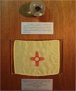According to Moon rocks researcher Robert Pearlman, the New Mexico Apollo 11 lunar sample display is exhibited at the Palace of the Governors, a division of the Museum of New Mexico.[1] The New Mexico Apollo 17 goodwill Moon rocks display is at the Roswell Museum and Art Center in Roswell, New Mexico.[3]