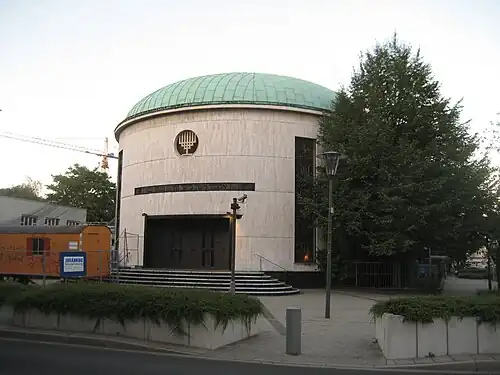 Designed by Hermann Zvi Guttmann, the current synagogue was inaugurated in September 1958[4] and is named in honour of Rabbi Leo Baeck, who served as a pulpit rabbi in Düsseldorf.[5]