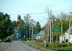 The route meanders north for about 2 miles (3.2 km), bending to the east and west along the river before straightening out and proceeding north to the hamlet of Bombay. NY 95 serves as the community's main north–south street, passing a park and several homes on its way to a junction with CR 4 (Bombay–Westville Road) in the center of the hamlet. Here, NY 95 turns westward while CR 1 begins to the north on NY 95's right-of-way. The route crosses CSX Transportation's Montreal Subdivision rail line before exiting the community for more rural areas of the town. It continues on a westerly track for roughly 2 miles (3.2 km) to a junction with CR 9 (Helena Road), a connector to the nearby St. Lawrence County line. From here, the route slowly curves northward away from the county line, meeting the western terminus of CR 2 before ending at an intersection with NY 37 east of the hamlet of Hogansburg. The north end of NY 95 lies just south of the St. Regis Indian Reservation and the Akwesasne Mohawk Casino.[3]