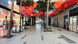 In September 2015, the former Newcastle & Suburban Co-Operative store building adjacent to the transport interchange was purchased as the site for a proposed bus interchange.[24] Demolition commenced in June 2018 and the new bus interchange opened on 5 July 2020.[25][26][27][28][29]