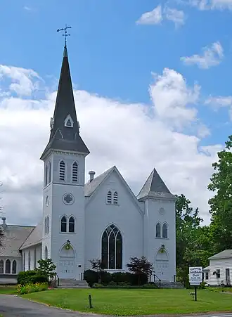 Newtonville is named after John M. Newton, an early landowner,[2] it was originally called Newton Corners.[3] Mr. Newton was in the business of manufacturing bricks, ceramics, and stove linings. He built the First Baptist Church in 1852, today it is the Newtonville Post Office and is on the National Register of Historic Places.[3][4] The first post office at Newtonville was established in 1850 and located in the store owned by John H. Kemp.[2] On October 27, 1887 the Rev. Dr. William Arthur, father of President Chester A. Arthur, died in Newtonville.[5] During the early 1900s Newtonville was a popular place in guide books catering to touring the countryside in early automobiles, such as- Scarborough's Official Tour Book (1918), Automotive Industries (1905), Albany Guide Book (1917), Automotive Blue Book (1921), Red Book: Interstate Automobile Guide, and the A.L.A. Green Book: Official Route Book (1920). In 1906 David Jeram began the Loudonville Autobus line with an 18 passenger Knox bus traveling between Latham's Corners and Albany with a stop at Newtonville.[6] In 1987 the Buhrmaster Barn, built in the 1800s along the Mohawk River was moved to Newtonville at the site of the historical museum, the Pruyn House. In 1997 the Verdoy Schoolhouse was also moved to that location.[7]