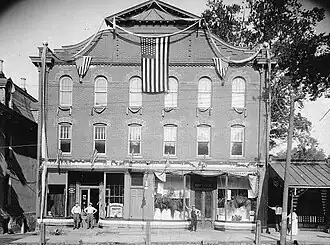 The Newtown Hardware House was destroyed by fire on March 1, 1899. In addition to the Hardware store another store was completely burned. The loss was estimated at $80,000.[4] The fire was one of the worst in Newtown's history. It is thought burglars set the building on fire.[5] The building was rebuilt to the exact specifications of the original building and was reopened by Christmas of the same year and is still in operation. Today, when looking at the rear wall, lower left (northern) portion of the structure, a distinct brick line exists that outlines surviving brickwork dating before 1899.[1][6]