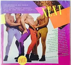 The first issue of Next Magazine "hit the streets of New York" on July 23, 1993.[2] It was founded by co-publishers David Moyal and nightlife promoter John Blair in response to the gay sexual revolution happening in and around the West Village and Chelsea neighborhoods of Manhattan. Their first offices were located at the corner of Fifth Avenue and 20th Street.[3]