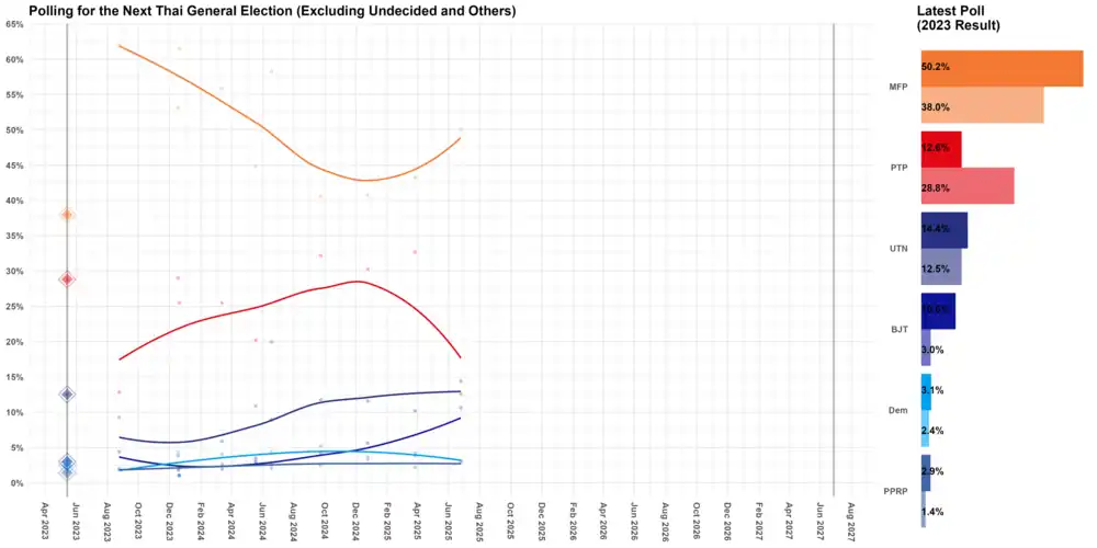 LOESS curve of the polling for the next Thai General Election.
