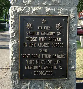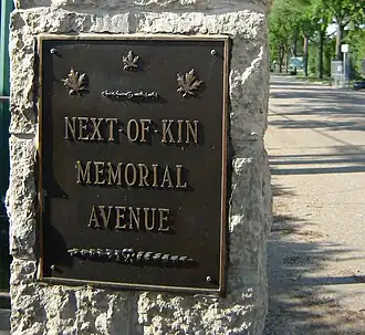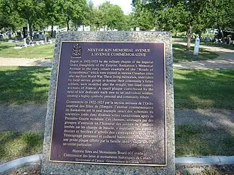 - ^ Next of Kin Memorial Avenue. Canadian Register of Historic Places. Retrieved 19 August 2012.