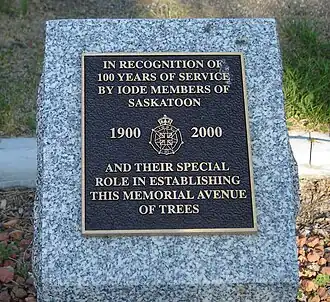 - In recognition of 100 years of service by IODE members of Saskatoon. 1900–2000. and their special role in establishing this memorial avenue of trees.