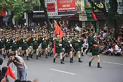 The old name of the street was Duvillier Street, but became known as phố Hàng Đẫy. Under the French this became Rue Duvillier in 1908,[1] named after a French official.[2] This became the phố Hàng Đẫy, then phố Phan Chu Trinh in 1945,[3] then finally the street was given the revolutionary name phố Nguyễn Thái Học in 1950.