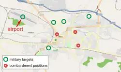 On 12 May 1999, the eastern part of the city was bombed with cluster bombs, resulting in 11 civilian injuries. Many of the injuries were amputations. This part of the city, Duvanište, is more than 7 km from the airport. The last victim of that bombing was killed in the year 2000, when an unexploded bomb detonated.[6]