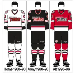 The team never regained its strength of the first four seasons. After three poor seasons on the ice from 1992–93 to 1994–95, game attendance was dropping. This, combined with rescheduling of Sunday games to Saturday nights, and an aging arena with no new arena deal in sight, resulted in the Thunder moving to Erie, Pennsylvania, to play as the Otters.