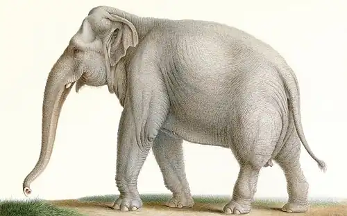 Huet produced a series of 246 animal drawings on vellum for the library of the Muséum d’Histoire Naturelle, and these were published in 1808 as 'Collection de mammifères du Muséum d’Histoire Naturelle'. From 1823 until his death Huet was 'Professeur d’iconographie des animaux', and continued exhibiting drawings and watercolours of animals at various salons until shortly before his death. Huet was also commissioned to create elaborate drawings of animals, often on vellum, for notables such as Frederick Augustus II of Saxony, and the military officer André Masséna, Prince d’Essling and Duc de Rivoli.[3]