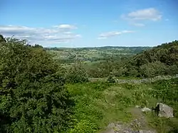 The Nidderdale National Landscape is an Area of Outstanding Natural Beauty in North Yorkshire, England, bordering the Yorkshire Dales National Park[1] to the east and south. It comprises most of Nidderdale itself, part of lower Wharfedale, the Washburn valley and part of lower Wensleydale, including Jervaulx Abbey and the side valleys west of the River Ure. It covers a total area of 233 square miles (600 km2).[2] The highest point in the Nidderdale AONB is Great Whernside, 704 metres (2,310 ft) above sea level, on the border with the Yorkshire Dales National Park.