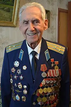 | Awards | Hero of the Soviet Union Order of Lenin Order of the Red Banner (three times) Order of the Patriotic War First Class (twice) Order of the Red Star (twice) Medal "For Battle Merit" Medal "For the Victory over Germany in the Great Patriotic War 1941–1945" Medal of Zhukov Medal "For the Capture of Königsberg" Medal "Veteran of the Armed Forces of the USSR" Medal "Veteran of Labour" Medal "For Impeccable Service" First Class Medal for Oder, Neisse and Baltic |