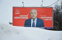 Nikolay Mikhailovich Kharitonov[a] (Russian: Николай Михайлович Харитонов; born 30 October 1948) is a Russian communist politician who has served in the State Duma since 1994, and as Chairman of the Committee on the Development of Far Eastern and Arctic regions since 2011. Kharitonov was the Communist Party of the Russian Federation's candidate for the 2004 Russian presidential election and for the 2024 Russian presidential election, but was defeated in both by the incumbent president Vladimir Putin.