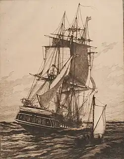 Anckers was also active as an artist. He studied etching at the Royal Swedish Academy of Fine Arts from 1895 to 1896, and produced etchings on mainly marine subjects, often with considerable accuracy regarding the depiction of technical nautical details.[2] At the 1900 Paris Exposition, he was awarded a silver medal.[5]