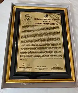 T. Chowdayya Rashtriya Prashasti - 2022-2023. Awarded on 31st January, 2024 by the Government of Karnataka