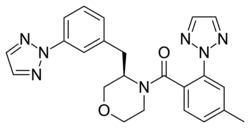 ACT-539313 ((4-methyl-2-[1,2,3]triazol-2-yl-phenyl)-[(R)- 3-(3-[1,2,3]triazol-2-yl-benzyl)-morpholin-4-yl]-methanone) is an orally active, reversible, selective OX1 receptor antagonist (1-SORA) that readily crosses the blood–brain barrier.