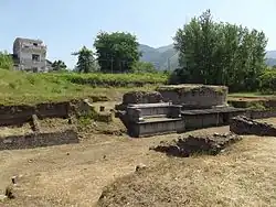 The necropolis was along the road from Nuceria Alfaterna to Stabiae dating from the end of the 2nd century BC to the 5th century AD.[10] The remains of a rustic villa of the 2nd century BC was also found partially obliterated by the church of San Matteo, and a temple was built over it in the Republican age of which the square platform remains.