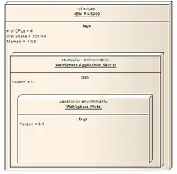 • An execution environment represents software containers (such as operating systems, JVM, servlet/EJB containers, application servers, portal servers, etc.) This is a node that offers an execution environment for specific types of components that are deployed on it in the form of deployable artifacts.[2]