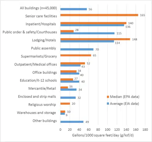 - ^ a b "2012 Commercial Buildings Energy Consumption Survey: Water Consumption in Large Buildings Summary". Commercial Buildings Energy Consumption Survey (CBECS). Environmental Information Administration, United States Environmental Protection Agency. 9 February 2017.