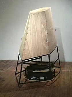 In "The Helpless Robot" (1987–96), an electronically synthesized voice asks for the physical assistance of passers-by with a persuasive tone.[27][28] Over time, the voice slowly changes to a more forceful, commanding tone, complaining when the interaction is not being completed properly.[29][3]