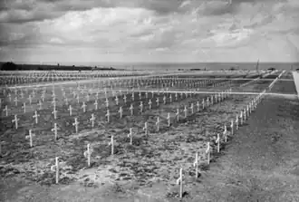On June 6, 1944, the 607th Quartermaster Graves Registration Company of the U.S. First Army established a temporary cemetery, the first American cemetery on French soil in World War II.[3] After the war, the present-day cemetery was established a short distance to the east of the original site.