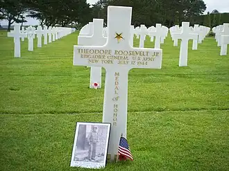 Among the burials at the cemetery are three recipients of the Medal of Honor, including Theodore Roosevelt Jr., son of President Theodore Roosevelt. After the creation of the cemetery, another son of President Roosevelt, Quentin, who had been killed in World War I, was exhumed and reburied next to his brother.