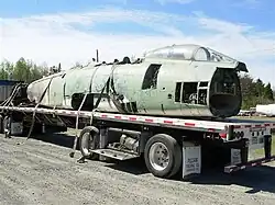 The addition of "wet" hardpoints meant the F-100C could carry a pair of 275 U.S. gal (1,040 L) and a pair of 200 U.S. gal (770 L) drop tanks. However, the combination caused a loss of directional stability at high speeds, so the four tanks were soon replaced by a pair of 450 U.S. gal (1,730 L) drop tanks.[31] The 450s proved scarce and expensive and were often replaced by smaller 335 US gal (1,290 L) tanks. Most troubling to TAC was the fact that, as of 1965, only 125 F-100Cs were capable of using all non-nuclear weapons in the USAF inventory, particularly cluster bombs and AIM-9 Sidewinder air-to-air missiles.[32] By the time the F-100C was phased out in June 1970, 85 had been lost in major accidents.[33]