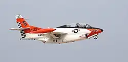 Every jet-qualified Naval Aviator and virtually every Naval Flight Officer from the late 1950s until 2004 received training in the T-2 Buckeye, a length of service spanning over four decades. The aircraft first exited the Naval Aviator strike pipeline (where it saw its final carrier landings) in 2004,[8] and the Naval Flight Officer tactical jet pipeline in 2008. In the Naval Aviator strike pipeline syllabus and the Naval Flight Officer strike and strike fighter pipeline syllabi, the T-2 has been replaced by the near-sonic McDonnell Douglas T-45 Goshawk (the U.S. Navy version of the BAE Systems Hawk), which is more comparable to other high-performance, subsonic trainers, or the supersonic U.S. Air Force Northrop T-38 Talon.[9] More recently, the T-2 has been used as a director aircraft for aerial drones. Several T-2 Buckeyes, although still retaining their USN markings, are now registered as civilian-owned aircraft with FAA "N" numbers; they regularly appear at airshows.