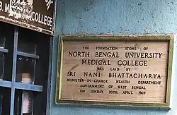 North Bengal Medical College and Hospital (NBMC&H) is a public medical college and hospital in Siliguri, West Bengal, India. Established in 1968, it is the first medical college in the northern region of West Bengal. It is one of the 26 government medical colleges in West Bengal and the largest in terms of area. The hospital has a bed strength of 1,500.[1]