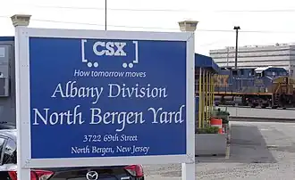The North Bergen Yard is freight rail yard and intermodal terminal in North Bergen, New Jersey parallel to Tonnelle Avenue between 49th and 69th Streets. Located within the North Jersey Shared Assets Area, the facility is part of CSX Transportation (CSXT) and the origination point of its CSX River Subdivision at the southern end of the Albany Division. On its west side, the New York, Susquehanna and Western Railway (NYSW) runs the length of the yard and operates a bulk transloading operation immediately adjacent to it.