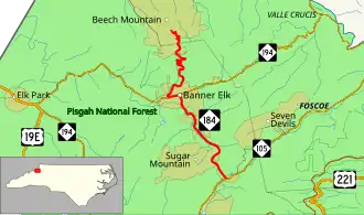 North Carolina Highway 184 (NC 184) is a primary state highway in the U.S. state of North Carolina. It runs from NC 105 at Tynecastle (Sugar Mountain) to the town of Beech Mountain.