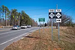 In August 2011, the eastern terminus of NC 75 was truncated at the auxiliary road to NC 200 (Martin Luther King Jr. Boulevard) after its completion as a bypass around Monroe.[3]