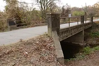 The North Washington Street Bridge is a historic bridge in DeWitt, Arkansas, USA. Built in 1910, it carries North Washington Street over Holt Branch, just south of Holt Lane, and is the oldest known concrete bridge span in the state. It consists of two spans of steel girders, resting on concrete abutments and a concrete central pier, with concrete decking. It is 40 feet (12 m) long and has a roadbed 15 feet (4.6 m) wide. Its guard rails consist of metal piping mounted on concrete piers with simple recessed panels as a decorative effect. The short spans of the bridge demonstrate the unfamiliarity with the use of concrete as a bridge-building material.[2]