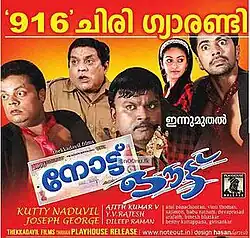 Note Out is a 2011 Malayalam comedy film directed by debutant Kutty Naduvil starring Nishan and Mithra Kurian in the lead roles. The music of the film has been composed by Vinu Thomas with lyrics written by Anil Panachooran. The film was released on 14 January 2011. The film is produced by Joseph George in the banner of Thekkadiyil Films, who also distributes the film through Play House Release.