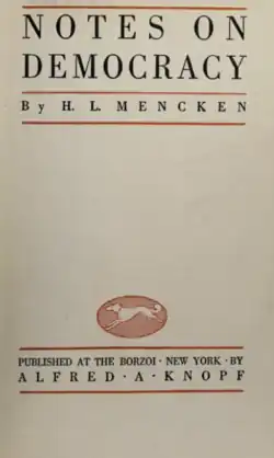 Notes on Democracy is a 1926 book by American journalist, satirist and leading cultural critic H. L. Mencken.