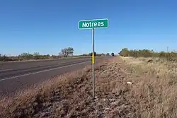 Notrees is an unincorporated community in west-central Ector County, Texas, United States. It is located on State Highway 302, approximately 20 miles northwest of Odessa.[2] The community is part of the Odessa metropolitan statistical area.