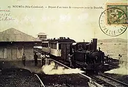 The idea of a railway connecting Nouméa to Canala on the North coast of the island 166 km (103 mi) Northwest of Noumea was first approved by governor Pallu de la Barrière in 1884. But money failed as the Conseil General hesitated to give the required loan necessary for the enterprise.[1] The following governor Paul Feillet was able to elect a Conseil General who borrowed the sum necessary for the execution of a program of works including the construction of a railway.