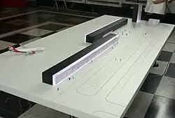 A model of the airport was presented by the Faculty of Technical Sciences from the University of Novi Sad. The airport was designed as an airport of "C" type with the outgoing and the incoming terminal, business object, with the control tower, and will occupy an area of about 7 hectares without a runway and internal roads.[2][9]