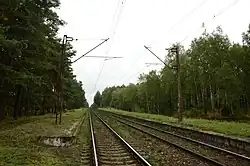 The second section was the connection between Bąk and Kościerzyna. This line was opened on 15 October 1928, although it became operational on 1 November 1926.[3] The line served two purposes: on one hand, it allowed the transport of construction materials, and on the other, it shortened the route between Tczew and Kościerzyna, as it did not require a detour to the border station of Chojnice. This section used embankments of an unfinished line connecting Czersk with Gdańsk,[16] and in the future, it was to be part of a trunk-line connecting Gdańsk with Poznań.[17] The section from Czersk to Bąk was to be an entry point to the trunk-line heading north from Chojnice (Germany) and Tczew (East Prussia).[18]