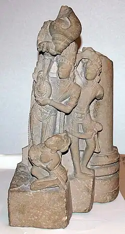 The Nrisimha Tapaniya Upanishad (नृसिंह तापनीय उपनिषद्) is a minor Upanishadic text written in Sanskrit. It is one of the 31 Upanishads attached to the Atharvaveda,[1] and classified as one of the Vaishnava Upanishads.[2] It is presented in two parts, the Purva Tapaniya Upanishad and the Uttara Tapaniya Upanishad, which formed the main scriptures of the Narasimha sect of the Vaishnavas dated prior to the 7th century.[3][4][5]