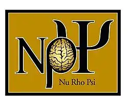 Nu Rho Psi (ΝΡΨ or NRP) is the National Honor Society in Neuroscience,[1] founded in 2006 by the Faculty for Undergraduate Neuroscience and now an independent honor society. Nu Rho Psi is a non-profit, grass-roots organization of neuroscientists and is governed by a National Council elected by the members. Charters have been awarded to chapters at colleges and universities in all regions of the United States of America. As of November 2021 Nu Rho Psi has installed 98+ chapters and initiated 7,000+ lifetime members. Prominent honorary members include Dr. Larry Squire (University of California – San Diego), Dr. Robert Sapolsky (Stanford University), Bruce McEwen (Rockefeller University) and the 14th Dalai Lama of Tibet.