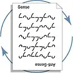 Ambigrams (symbols that convey different meaning when viewed in a different orientation) have been designed to mirror structural symmetries found in the DNA double helix.[10] By assigning ambigraphic characters to complementary bases (i.e. guanine: b, cytosine: q, adenine: n, and thymine: u), it is possible to complement DNA sequences by simply rotating the text 180 degrees.[11] An ambigraphic nucleic acid notation also makes it easy to identify genetic palindromes, such as endonuclease restriction sites, as sections of text that can be rotated 180 degrees without changing the sequence.