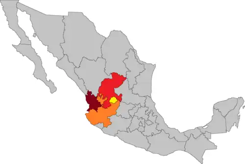 - Province of Nueva Galicia: Aguascalientes, Nayarit and Jalisco.