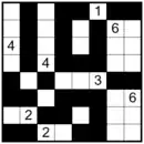 - Each numbered cell belongs to a white area, the number indicates how many cells belong to the white area. Some white areas may not include a numbered cell.