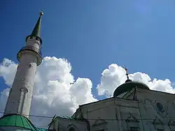 The Nurulla Mosque (also spelled Nurullah; Cyrillic: Нурулла́; formerly The Seventh Cathedral Mosque, Hay Bazaar Mosque: Tatar: Печән Базары мәчете, romanized: Peçän Bazarı mäçete; Russian: Сенная мечеть/Sennaya, Bazaar Mosque, Yunıs Mosque, The Main Mosque, The White Mosque etc.) is a mosque in Kazan, Russia.