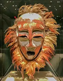 ![]() A Nyindu face mask with a feathered collar, Monument Avenue in Richmond, Virginia | |