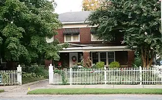 The O.L. Dunaway House is a historic house at 920 Center Street in Conway, Arkansas. It is a two-story brick American Foursquare, with a hip roof and brick foundation. A single-story porch extends across the front and around the side, supported by brick columns. It is relatively broad for the style, its shape influenced by the Prairie School of design. It was built in 1923 for Oscar Lee Dunaway, a Christadelphian Bible school teacher.[2]